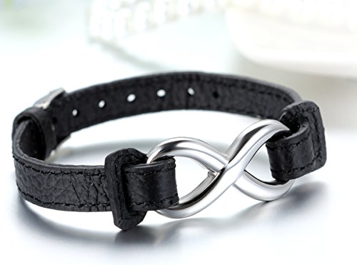 • Material: Stainless Steel + Leather, Unisex infinity symbol bracelet