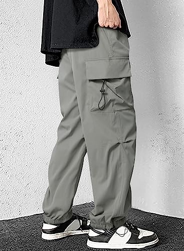 JMIERR Men’s Cargo Pants – Casual Parachute Pants Drawstring Elastic Waist Wide Leg Tappered Y2K Hip Hop Baggy Joggers,US 34(M),Grey