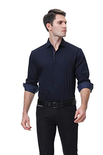 • BAMBOO SHIRTS: Contrast on Inner Cuff, Placket and Collar which creates casual and fashionable look, fit true to size. Mens shirts long sleeve casual, Solid color, Non-iron, Spread collar, Fashion Button-down style, rgular fit stylish design,The mens casual button down shirts is really classic and elegant. Plus, multiple colors for your choice, this long sleeve men shirt is what you must need in your wardrobe