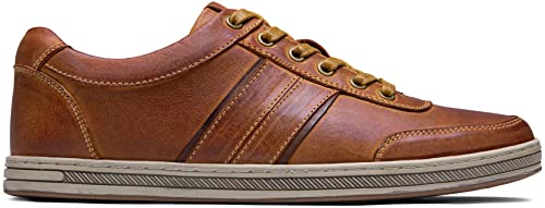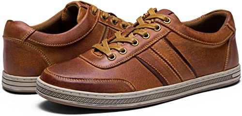 Jousen Men’s Leather Fashion Sneakers Retro Dress Business Casual Shoes for Men(RMY5200 Cognac 10)