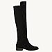 - FEATURE: Knee high fashion boots for women, pointy toe, low heel, faux suede. Stretchy materila, made with a full elasticated leg for most shape calf fitting as possible.