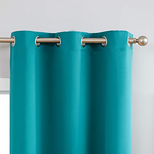 JUNFR Blackout Curtains 2 Panels Set – Indoor/Outdoor Thermal Insulated Solid Grommet Room Darkening Drapery for Living Room Small Window (Teal Blue, 52Wx63L)