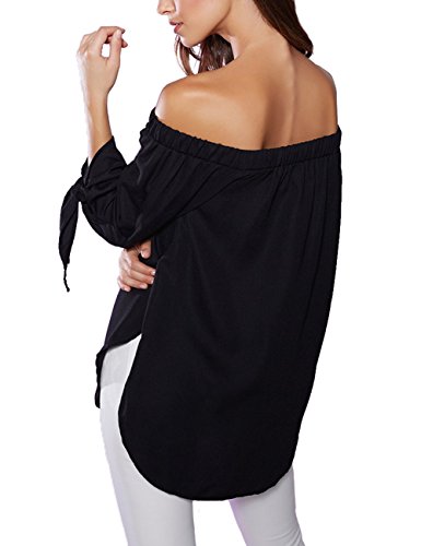 Just Quella Women’s Off Shoulder Loose Shirt Blouse 8422 (Medium, Black)