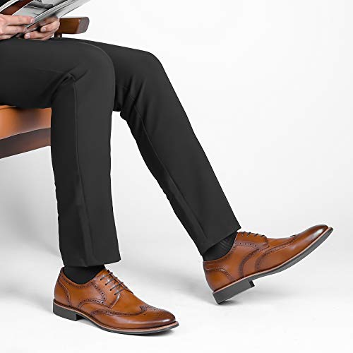 • Rich & Breathable Leather Upper:These classic wing tip lace up Oxfords shoes and soft round-toe design with brogue perforated trims.It is breathable and comfortable to wear. The upper is polished for a good glossy finish and a smooth feel.
