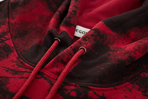 KLIEGOU Men’s Fashion Graphic print hooded sweatshirt(299WY Red wine M)
