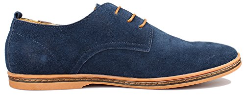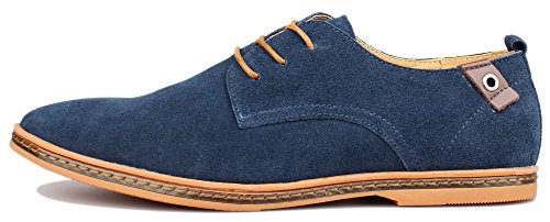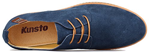 Kunsto Men’s Classic Leather Oxford Flats Shoes Lace Up US Size 10 Blue
