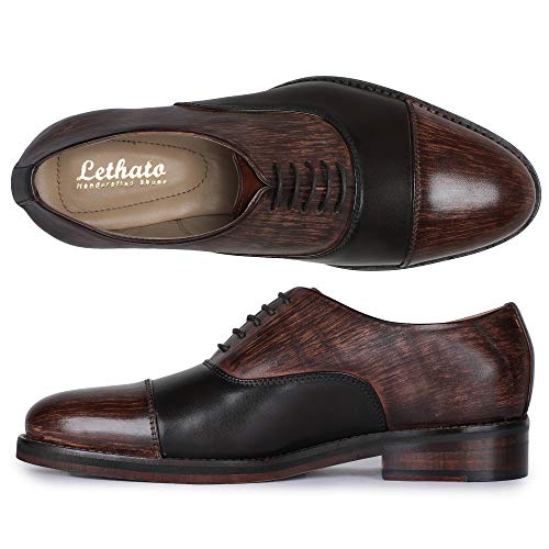 Lethato Handmade Mens Classic Captoe Oxford Genuine Leather Lace up Dress Shoes- Brown