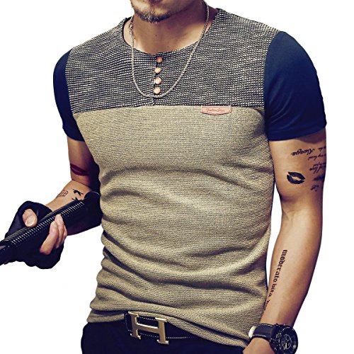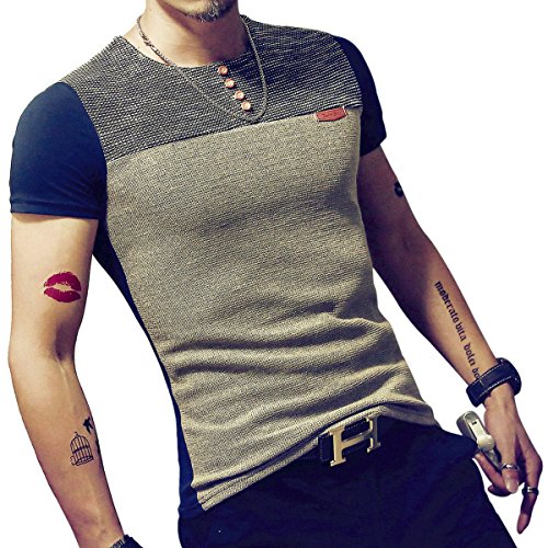 LOGEEYAR Mens Premium Fitted Short-Sleeve Contrast Color Stitching T-Shirt (M, Navy Blue)