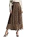 L’VOW Women’s Elastic Brown Leopard Print Watercolor Maxi Casual Skirt High Waisted Dress Pleated (AB-Brown, L)