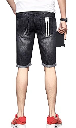 Men Vintage Ripped Knee High Mid Rise Regular-Fit Beach Denim Jeans Shorts Black US 27 / Tag 28