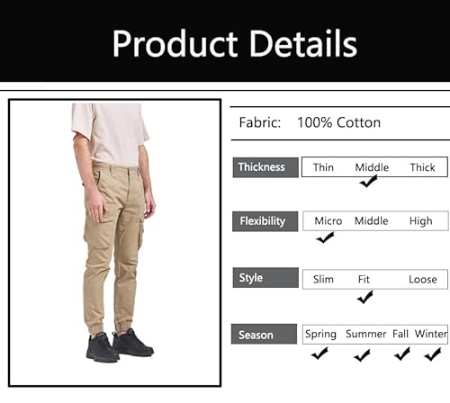 - Fabric:Men's Tapered Elastic Leg, work cargo pants is made of 100% cotton woven fabric, which has good breathability, comfy and softness.
