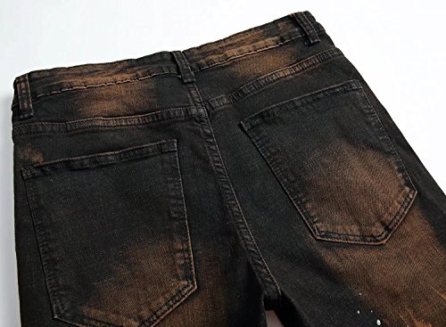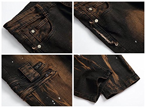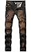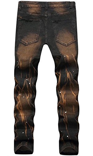 Men’s Distressed Slim Straight Fit Skinny Ripped Jeans with Zipper Pocket Black Yellow