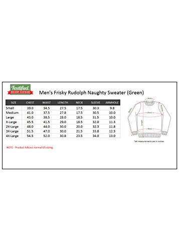 Men’s Frisky Reindeer Naughty Sweater (Green) – Ugly Holiday Sweater (XX-Large)