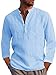 Mens Long Sleeve Henley Shirt Cotton Linen Beach Yoga Loose Fit Henleys Tops (XXX-Large, Blue)