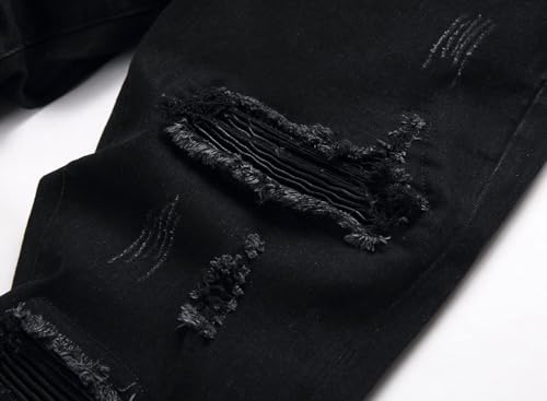Men’s Ripped Biker Slim Fit Patch Hot Drilling Jean (28, Black-6601)