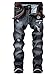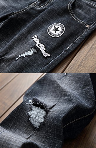 Men’s Straight Fit Distressed Ripped Jeans with Badge Detail Black 34