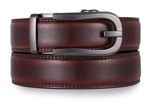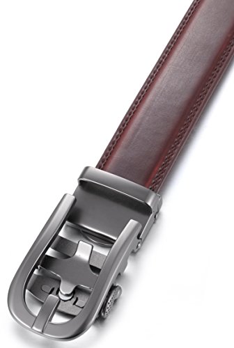 Solid MechanismOur amazing state of the art features offer you an effortless and efficient experience every time!! The tip of the ratchet belt inserts into the slide belt buckle, where a locking mechanism holds the ratchet belt in place on our unique tracking system and auto locks it from the back. To remove the slide belt, simply press the small metal lever on the bottom of the No Hole Belt buckle, and get a smooth inaudible release in only one second! Expertly ConstructedMarino belts for men are the epitome of elegant form meeting practical function. The combination of expert construction and great contemporary style is what makes Marino belts for men distinctively exclusive. Marino creates finely crafted auto lock belts of extraordinary beauty, comfort, durability and functionality.Higher in quality Marino dress belt is made with high quality genuine leather concealed with fortifying polyurethane. They are crafted with the finest fibers that breathe, repel moisture and age gracefully. Our sturdy, lightweight, scratch resistance click belt buckles are made with Zinc Alloy to create a substance with greater strength and resistance to corrosion.Perfect fit For an absolute great fit just follow these two simple steps:1. To loosen the ratcheting belt from buckle- firmly push the click belt forward inner way in adjustable belt buckle and closure will lift on its own. (No tools needed!)2. Cut the leather belt to your desired size and secure it firmly with closure.You’re no longer restricted to 1 inch size adjustments, but can get a perfect, superb, and custom-fit all the time! Loyal Service Customer satisfaction is our mission. Marino is here to provide our esteemed customers a most pleasant experience. Our 45 days return policy, plus 180 days warranty, enables you a risk free purchase!