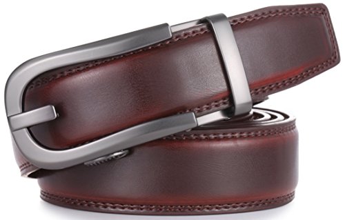 - NO MORE HOLES - Marino's leather belt provides 38 unique adjustments for an extremely comfortable fit. Easy removable buckle allows you to cut the ratchet belt to your ideal size to give a primmer and custom-tailored appearance!