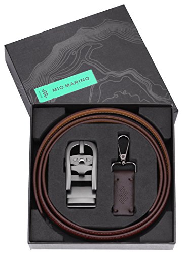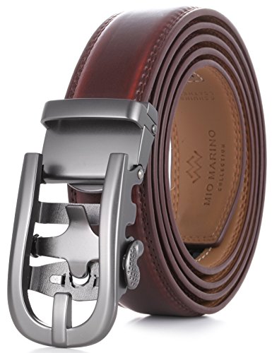 Mio Marino Ratchet Click Belts for Men – Mens Comfort Genuine Leather Dress Belt – with Automatic Buckle, Enclosed in an Elegant Gift Box – Style 186 – Mahogany – Adjustable from 28″ to 44″ Waist