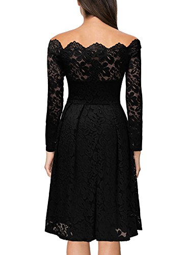 MISSMAY Women’s Vintage Floral Lace Long Sleeve Boat Neck Cocktail Party Swing Dress (Black, Small, s)
