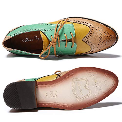 Mona flying Women’s Leather Perforated Brogue Wingtip Derby Saddle Oxfords Shoes for Women ladis Girls