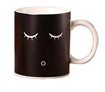 Start the day with the Morning Mug.This is the cutest thing ever! Great gift for anyone. hot liquid,such as coffee ,tea are pored into the mug the the mug ‘s appearance quickly changes,within a minute,the black cup completely turns white.the face will have awoken to greet you.what a magical cup.you can give it as gift to your children and your family and friends,they must love it. NOTE 1. Don’t expose under the sunshine for long time 2. Don’t scrape on the printing with sharp tools 3. Wash with hand, not suitable for dishwasher machine. 4. Water temperature should be over 70¡ãC/158¡ãF5,the color changed. Be careful with hot water!