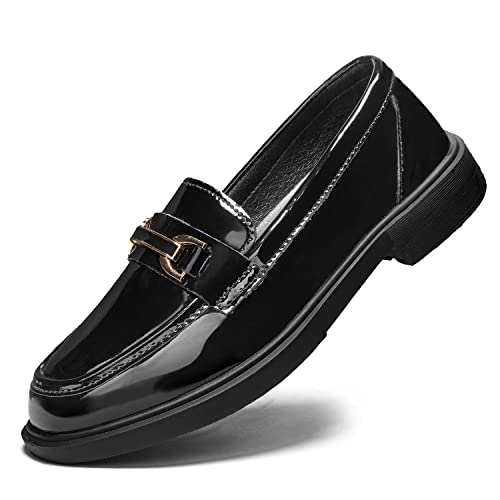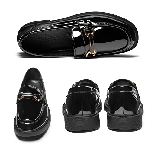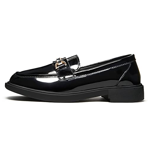 mznrjoa Patent Leather Penny Loafers for Women Dressy Shoes Slip On Comfort Casual Memory Foam Flat Office Work Dress Shoes Black 9 US