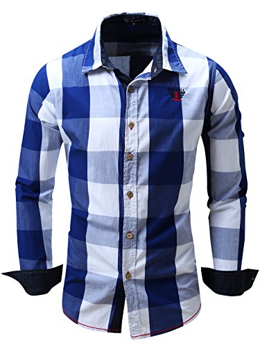 Neleus Men’s Long Sleeve Button Down Plaid Shirts,112,Blue,XL,Tag 2XL
