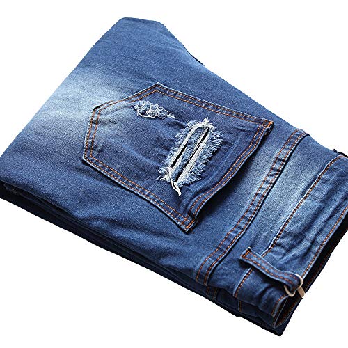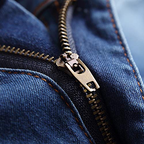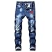 NUWFOR Men’s Embroidered Jeans Fashion Pure Color Zipper Trousers Pant(Blue,US:38/AS:XXXXL Waist:40.2″)