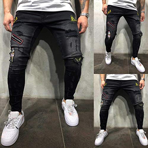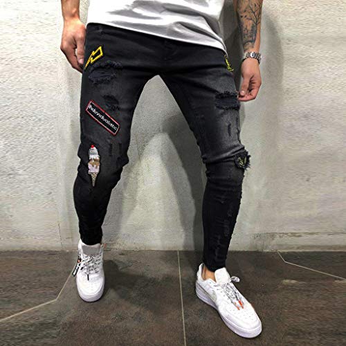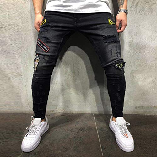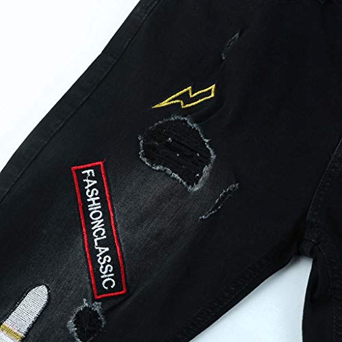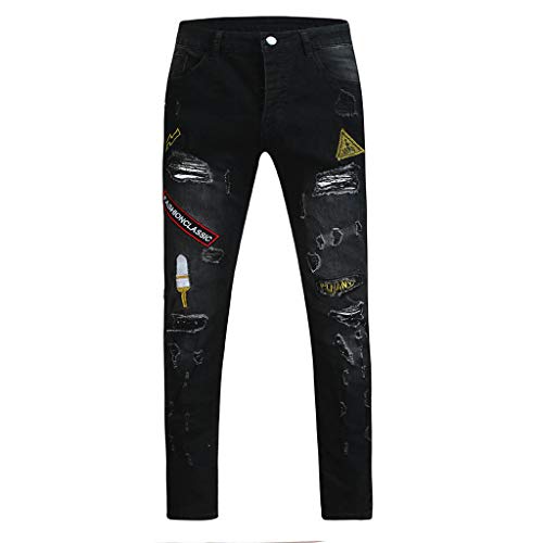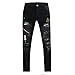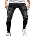 NUWFOR Mens Skinny Stretch Denim Pants Distressed Ripped Freyed Slim Fit Jeans Trousers(Black,US:27/AS:S Waist:28.0″)