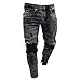 NUWFOR Mens Skinny Stretch Denim Pants Distressed Ripped Freyed Slim Fit Jeans Trousers(Gray,US:36/AS:XXXL Waist:37.8″)