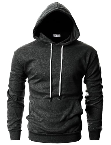 OHOO Mens Slim Fit Long Sleeve Lightweight Hoodie with Kanga Pocket/DCF010-CHARCOAL-XS
