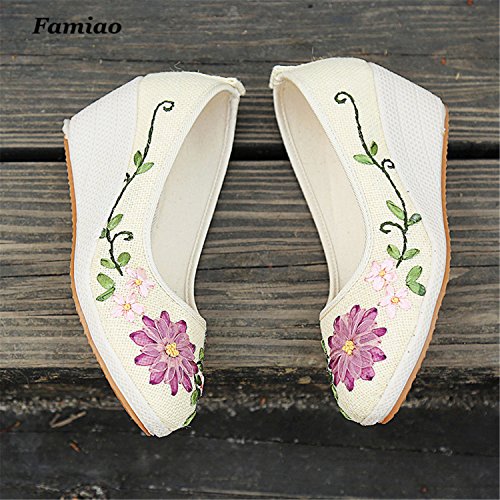 Perfectupstore Casual Flowers Ladies Pumps Summer Shoes Hemp Slip On Wedges Women Platform Pump Ww509 White 7