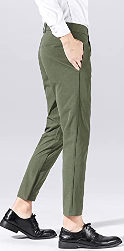 Plaid&Plain Men’s Cropped Pants Slim Fit Dress Pants Uniform Pants Suit Pants for Men 662# Olive 36Wx26L