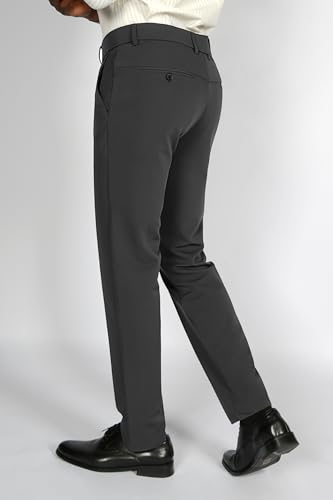 Plaid&Plain Men’s Dress Pants Slim Fit Stretch 603 Charcoal(New) 36X28