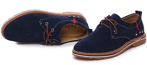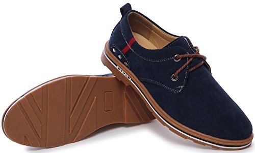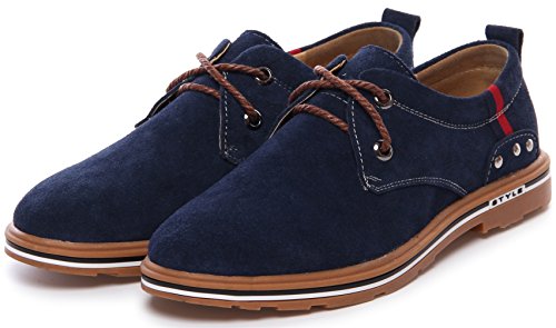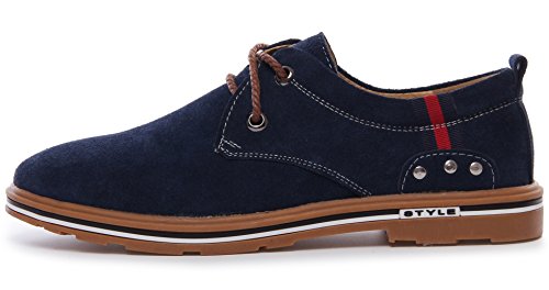 PPXID Men’s Suede Leather Lace Up Casual Oxford Shoes-Blue 9 US size