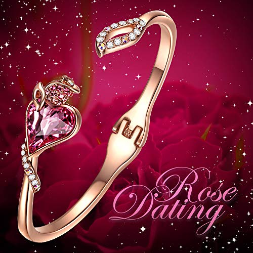 Qianse Rose Lover Rose Gold Bangle Bracelet Made With Swarovski Crystal