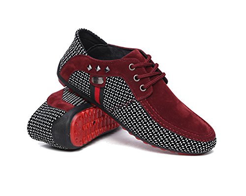 QIDIANTRADE Men’s Fashion Casual Boat Gommino Shoes , Lace up Suede Sneaker, Breathable Slip. (11D(M)US, Red)