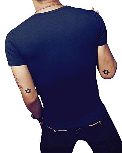 Rela Bota Mens Slim Fitted Short Sleeve Shirts- Casual Henleys T-Shirts Contrast Color Tee