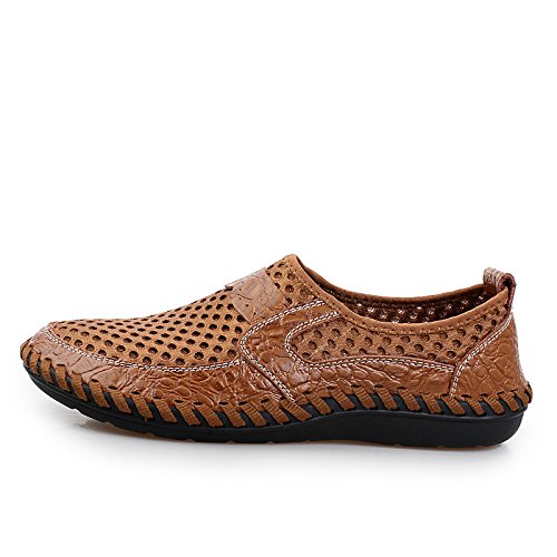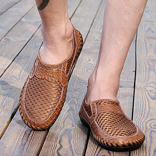 Salabobo QYY-7923 Mens Casual Leather Mesh Athletic Comfy Breathable Leisure Sneakerss Brown US Size6.5