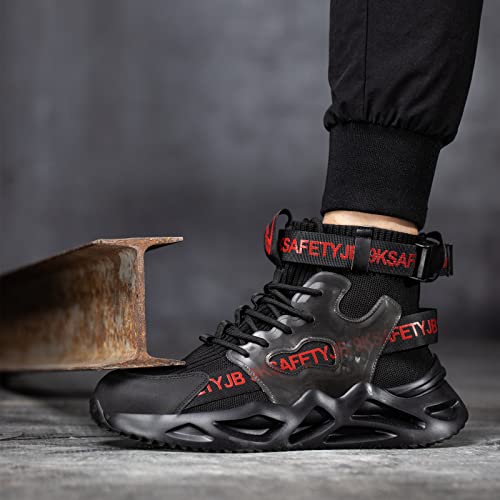 Sanearde Steel Toe Shoes Men Lightweight Work Safety Shoes Indestructible Sneakers Breathable Comfortable Slip Resistant Sneakers Black Size 5