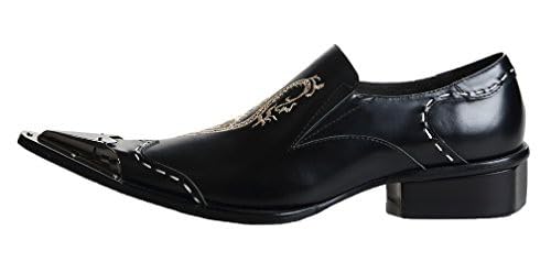 Santimon Chelsea Pointed Toe Western Embroidery Leather Dress Men Shoes Black 9.5 US