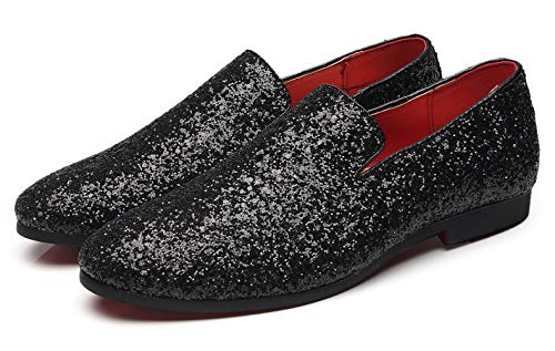 Santimon Men Loafer Metallic Textured Slip-on Glitter Fashion Slipper Moccasins Casual Dress Shoes Black 11 US