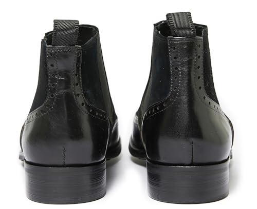 Santimon Mens Chelsea Dress Boots Leather Suede Wingtip Brogue Distinctive Slip on (11 M US, Black)