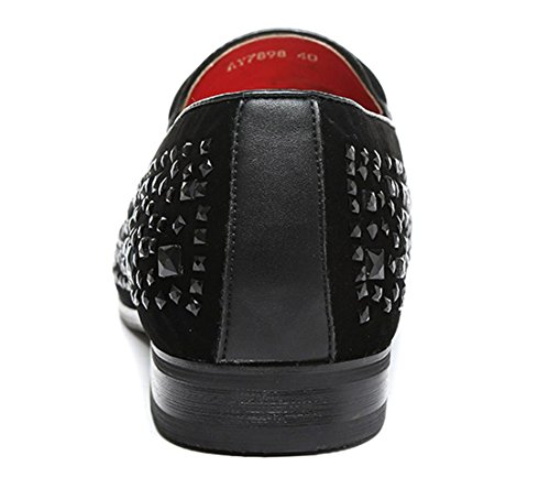 Santimon Mens Dress Loafers Slip on Fashion Handmade Rhinestone Causual Driving Boat Moccasins Shoes Black 9 D(M) US