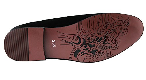 Santimon Mens Loafers and Slip on Smoking Slipper Moccasins Embroidery Suede Casual Dress Shoes Black Badge 9.5 D(M) US