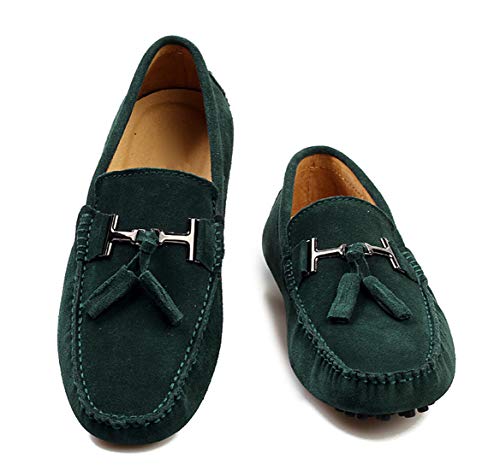 Santimon Mens-Moccasins Penny-Loafers Slip-On Casual Dress-Shoe Suede Tassels Boat Driving-Shoes Green 11 D(M) US