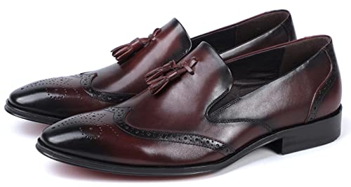 Santimon Mens Shoes Tassel Penny Loafer Leather Alligator Crocodile Print Dress Slip On Oxfords Shoes Tan 10 US