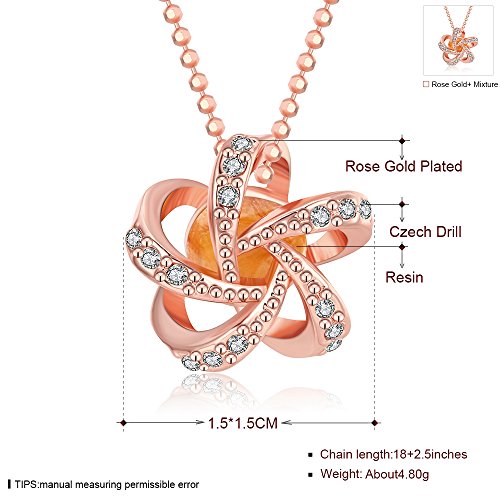 SDLM Austrian Crystal Inside Fancy Rose Gold Flower Mother’s Day Gift Pendant Necklace