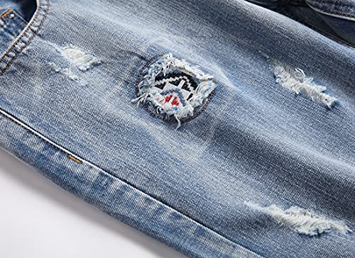 SHOOYING Men’s Summer Stretch Ripped Holes Denim Short Casual Holiday Jean Shorts with Pockets, Light Blue,US 36